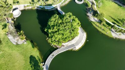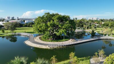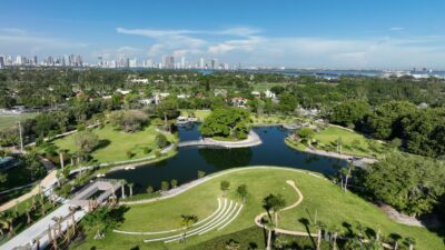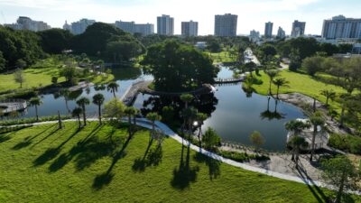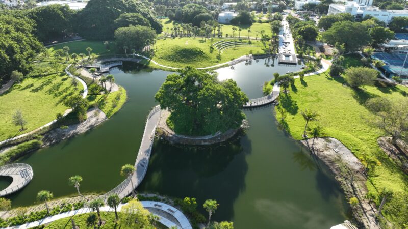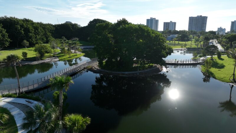 Scope: Develop a brand new 19+ acre park space with environmental remediation and resiliency components; construct an outdoor amphitheater, walking trail with lake overlooks, tennis courts and restroom facility, a pavilion shade structure, dog park, vita course, playground, and butterfly garden.